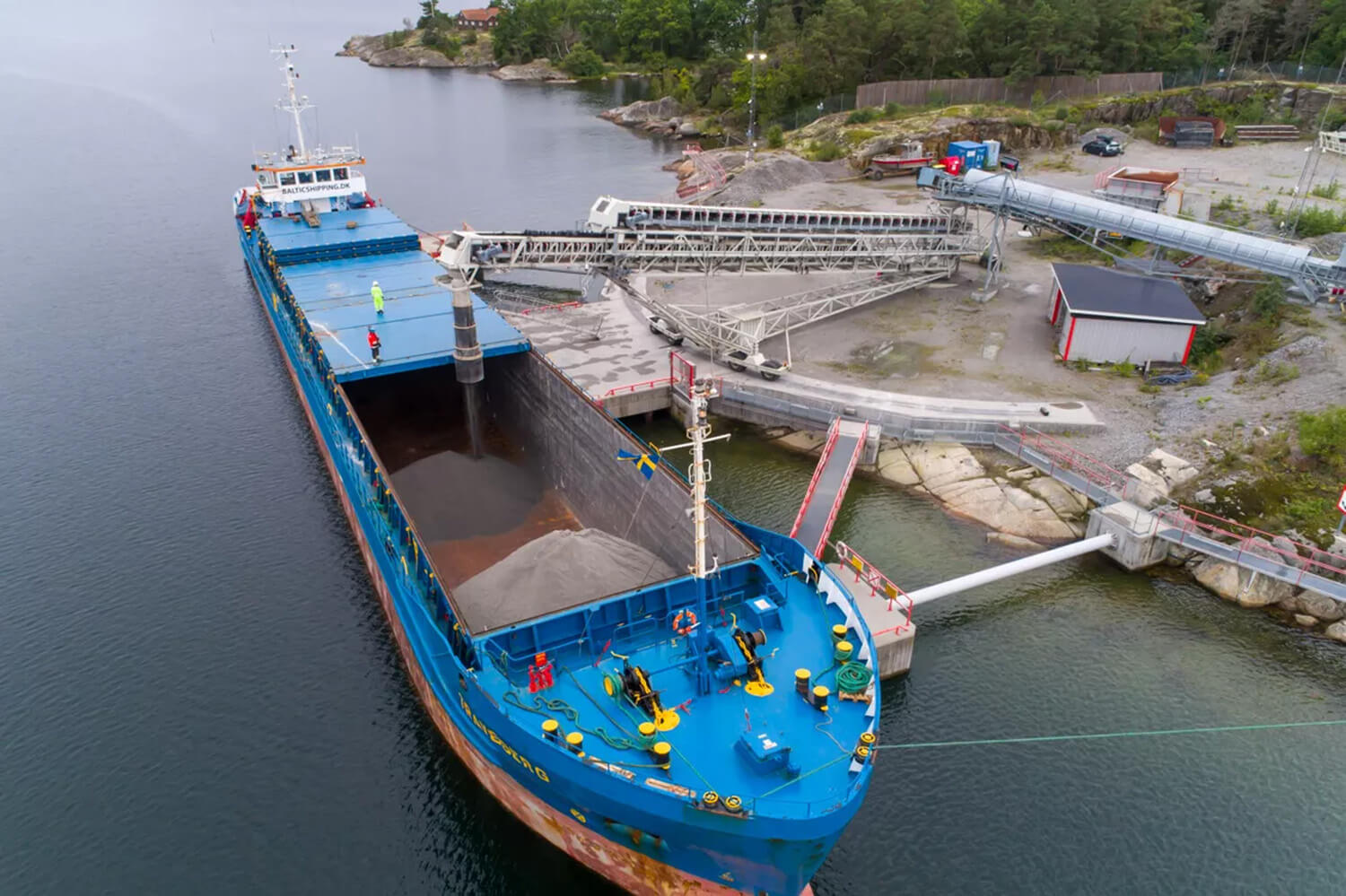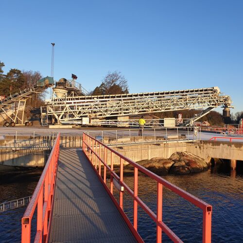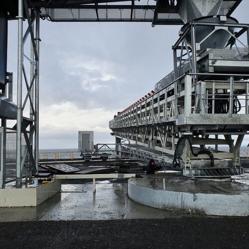 Für die sichere und zuverlässige Schiffsverladung verwenden wir unsere bewährten Radialteleskop-Förderer. Durch die Höhenverstellung mittels hydraulischer Hubeinrichtung passt sich der Förderer an die Schiffsgrößen und Gezeiten optimal an. Gleichzeitig ermöglicht es die elektromotorische Radial- und Teleskopiertechnik die Schiffe ohne Verholen von einem Speisepunkt aus konstant zu Beschicken.