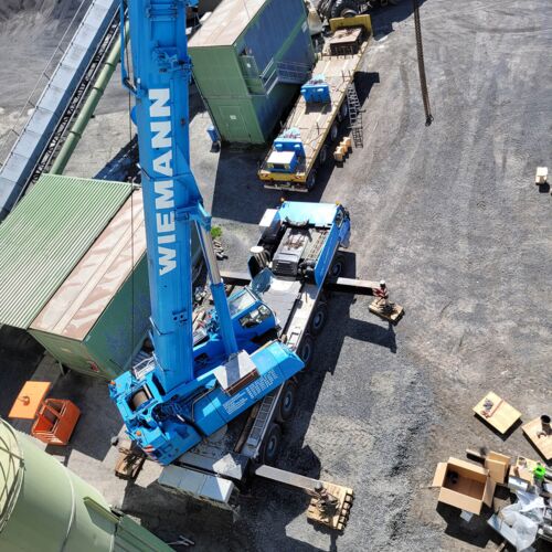 Mithilfe unserer hauseigenen Spedition werden zudem Personalcontainer für den Aufenthalt und die Unterbringung an der Baustelle sowie Hubsteiger und weitere größere Arbeitsgeräte transportiert.