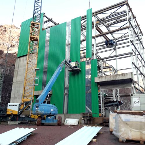 Wir konstruieren, fertigen und montieren Stahlbauten für die Aufbereitungstechnik – wie beispielsweise Gerüste für Brecher und Siebe – und übernehmen die Einhausung von Gebäuden. Durch eine intensive Zusammenarbeit mit allen führenden Maschinenbauern in der Stein- und Erdenindustrie integrieren wir auch Bestandteile wie Brecher und Siebmaschinen in neue oder bestehende Anlagen.